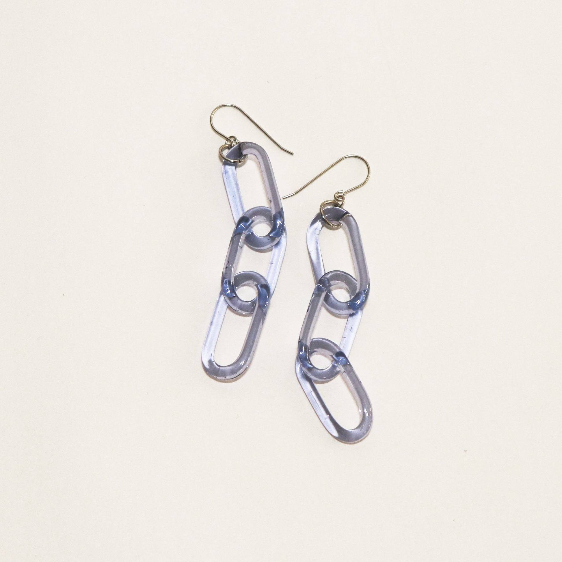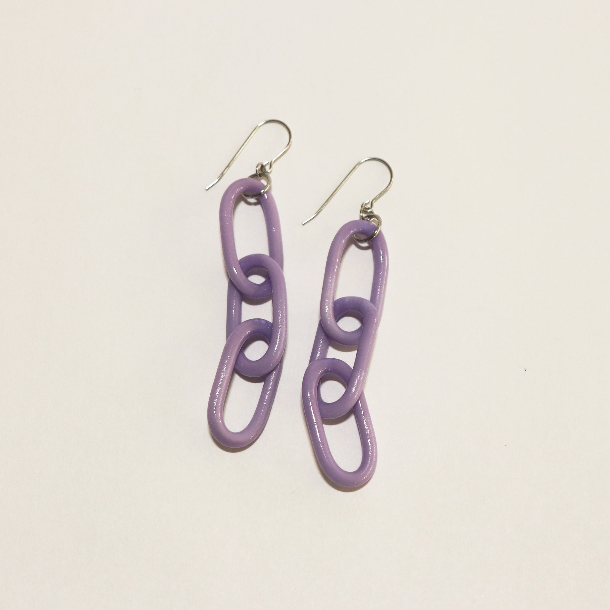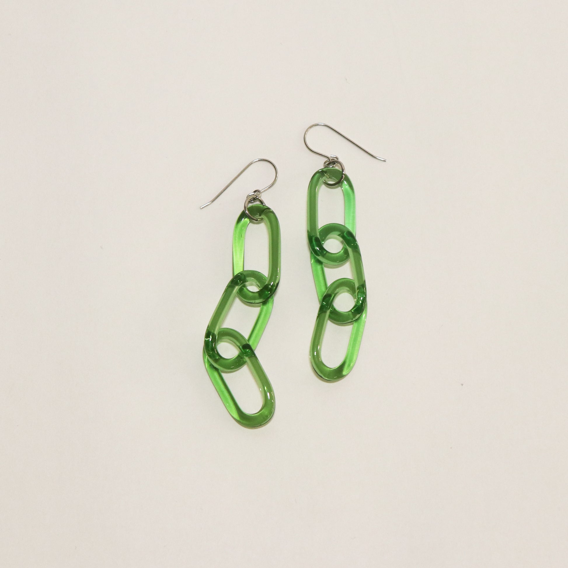 Flameworked glass and surgical steel. For a current selection of color choices, please email store@urbanglass.org